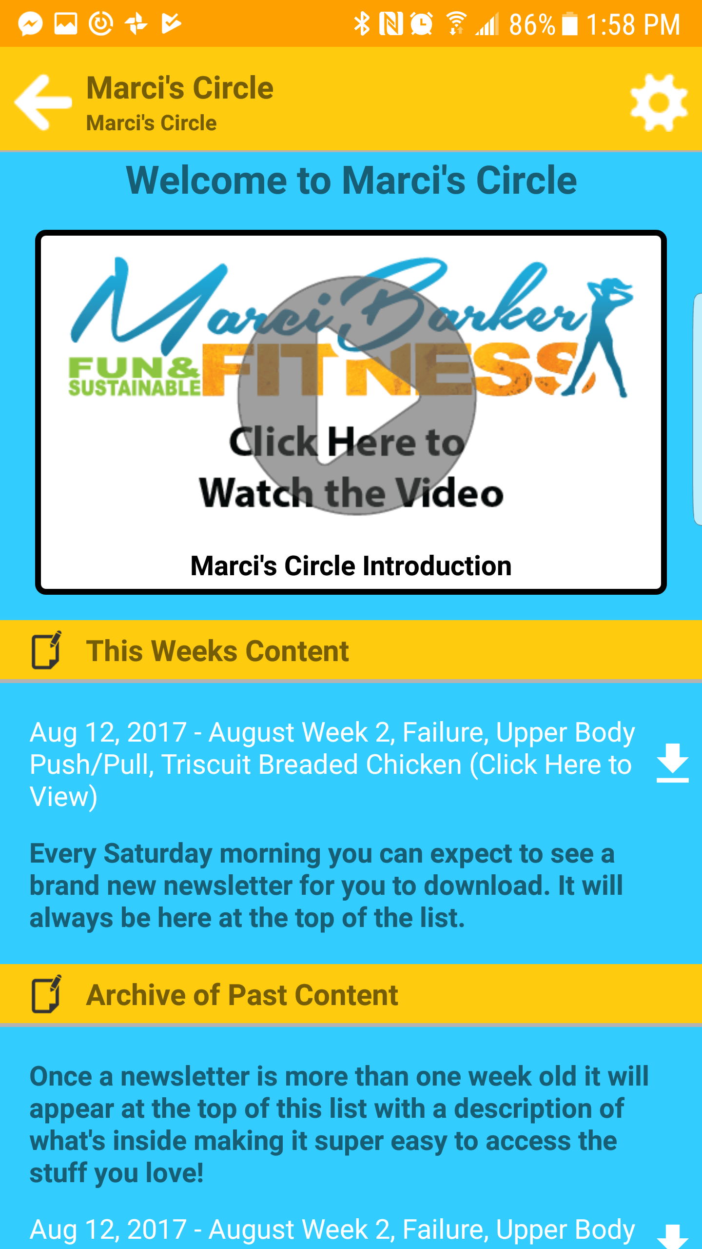 There you'll see your brand new newsletter with your recipe, workout, pictures and videos, and relevant education based on exactly what you and other members of Marci's Circle need.